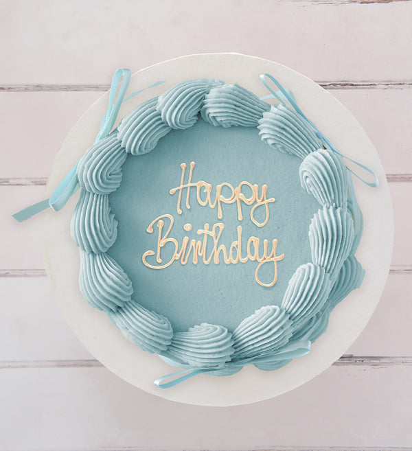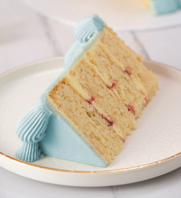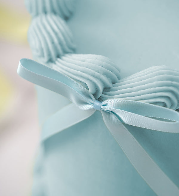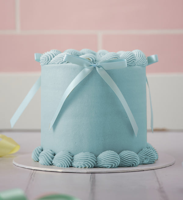 Treat yourself to a slice of simple vintage charm! Decorated with blue vanilla icing and optional matching bows, it’s a nostalgic delight in every bite.