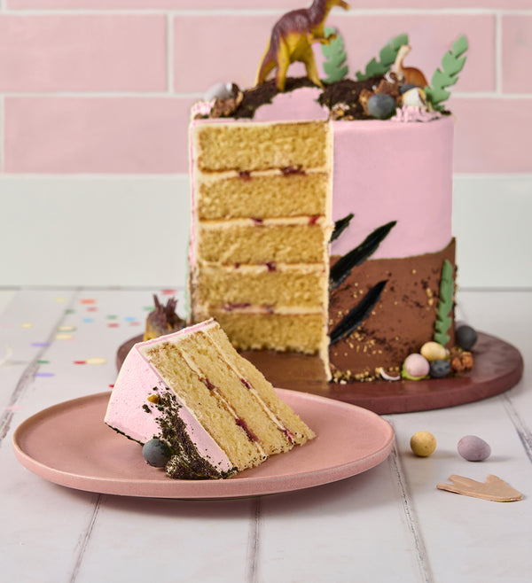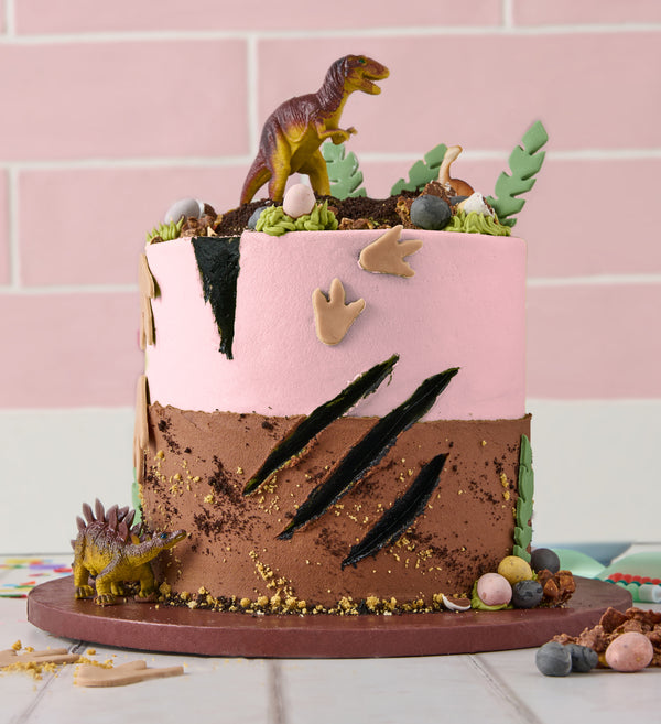 Hey there, dino-mite party planners! We’ve got a jaw-dropping Dinosaur cake just for you! Plus, a selection of fun dinosaur toys! No artifical colours are used in this cake.