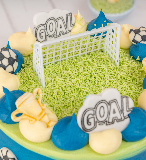 You shoot, you score! This cake is sure to win player of the match with layers of delicious sponge and buttercream. Customise it with your favourite team colours and sponge flavour.
