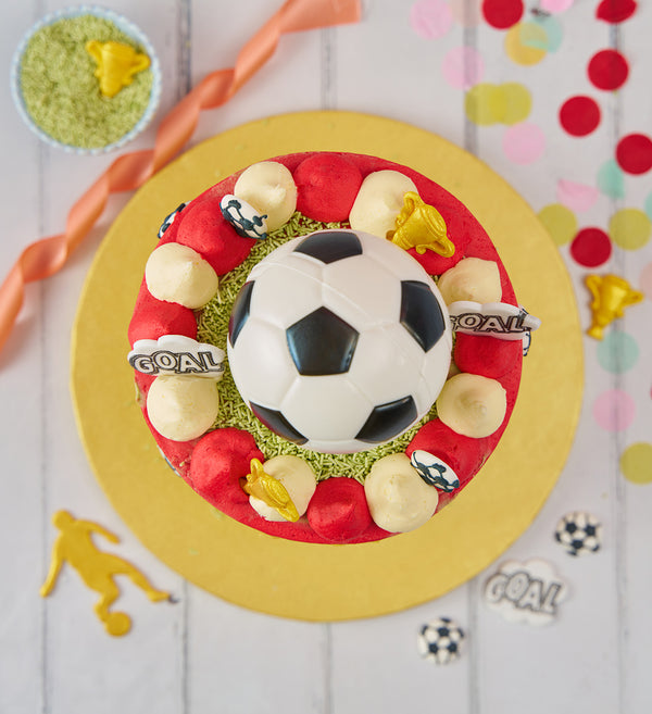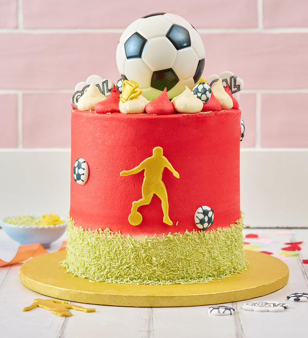 He shoots he scores!!! This cake is sure to win player of the match with layers of delicious sponge and buttercream. Customise it with your favourite team colours and sponge flavour.