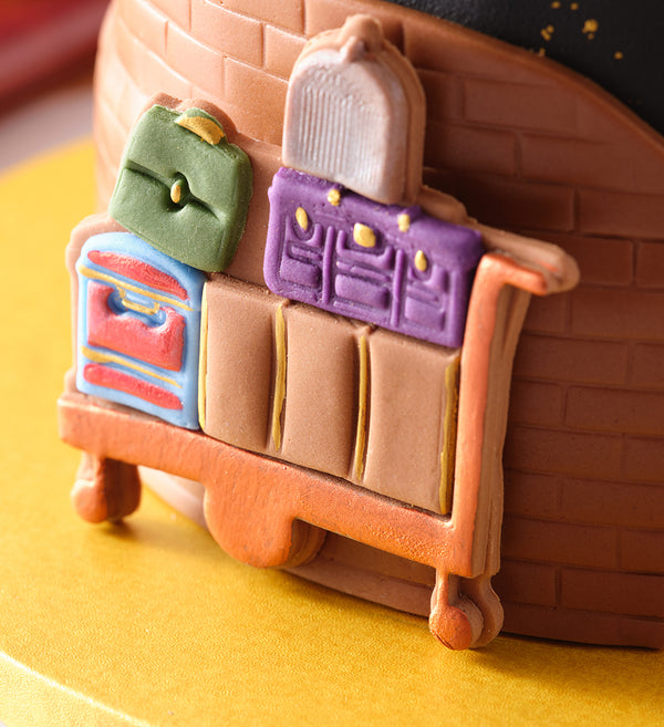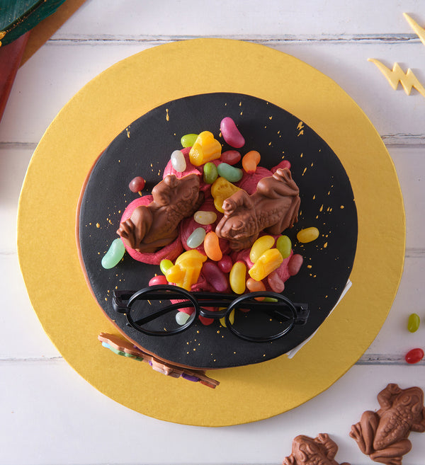 Embark on your own sensory journey to Hogwarts with this marvellous creation that includes all the flavours from the Hogwarts Express. From chocolate frogs to Butterbeer candy and Bertie Bott’s Every Flavour Beans™, this triple-layered cake embellished with an edible Platform 9¾ and a luggage trolley will take your taste buds out of this world.