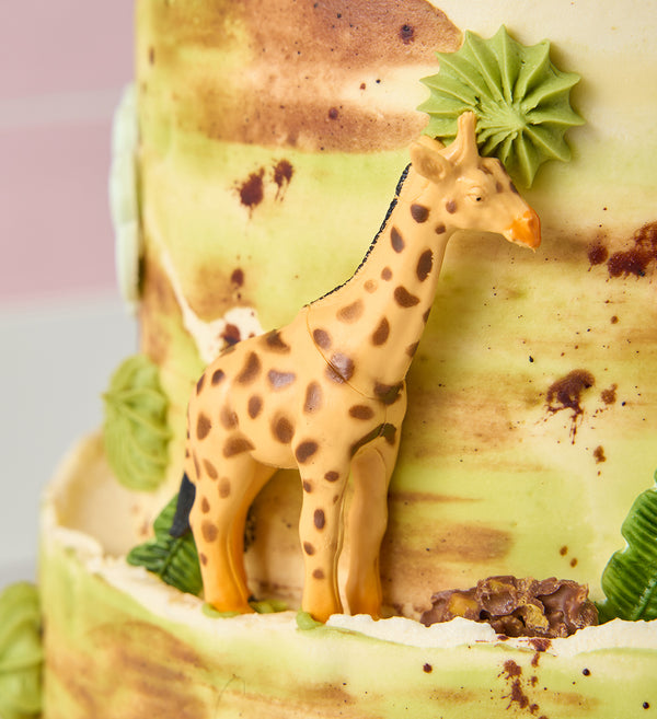 Take a walk on the wild side, then take a bite! This delicious two-tiered cake is an unforgettable flavour safari with chocolate crumbs, clusters and sugar paws!