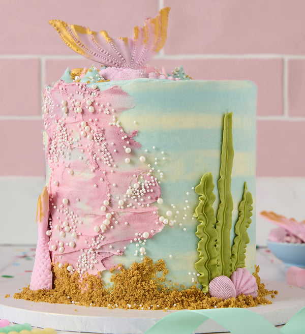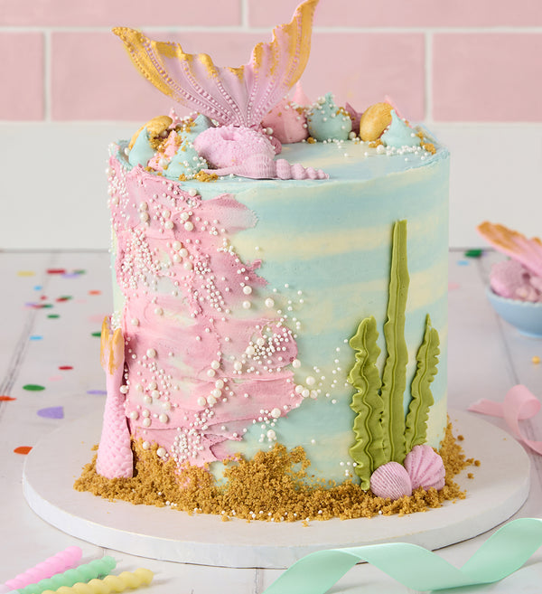 Dive into deliciousness with our Mermaid Cake! This cake is sure to make a splash at any celebration. No artifical colours are used in this cake.