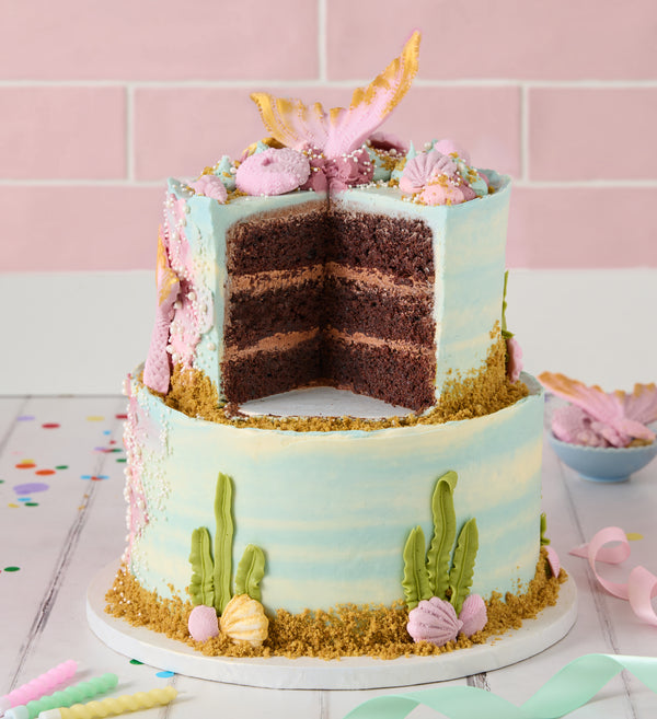 Dive into deliciousness with our Mermaid Cake! This cake is sure to make a splash at any celebration. No artifical colours are used in this cake.