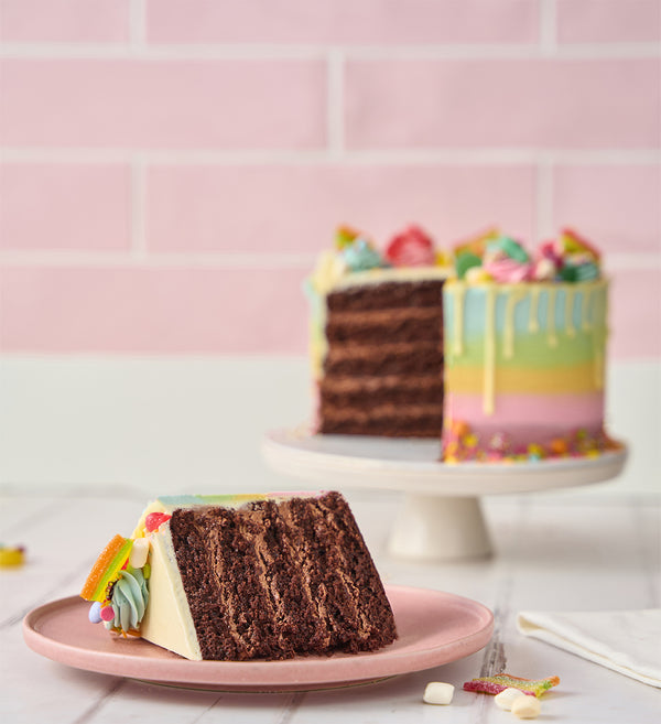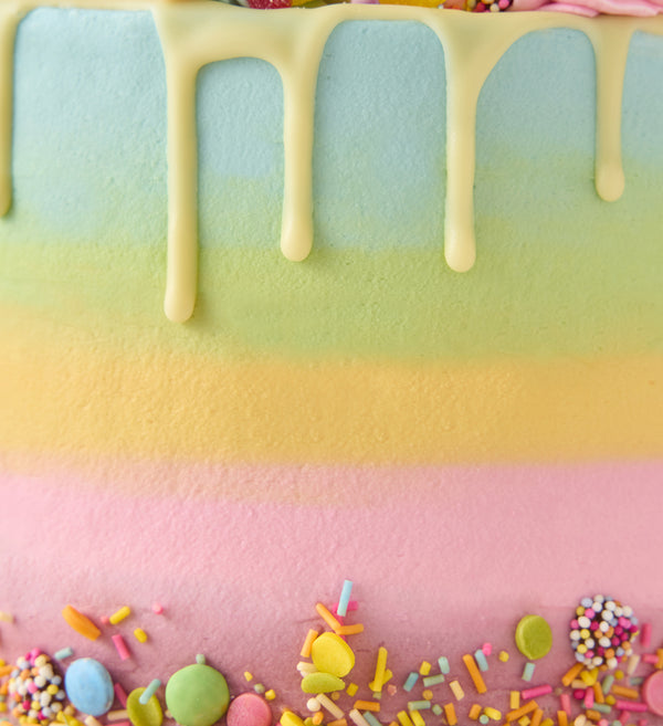 Perfect for everyone, from kids to adults! Our candy coloured cake brings a burst of joy to any celebration. No artifical colours are used in this cake.