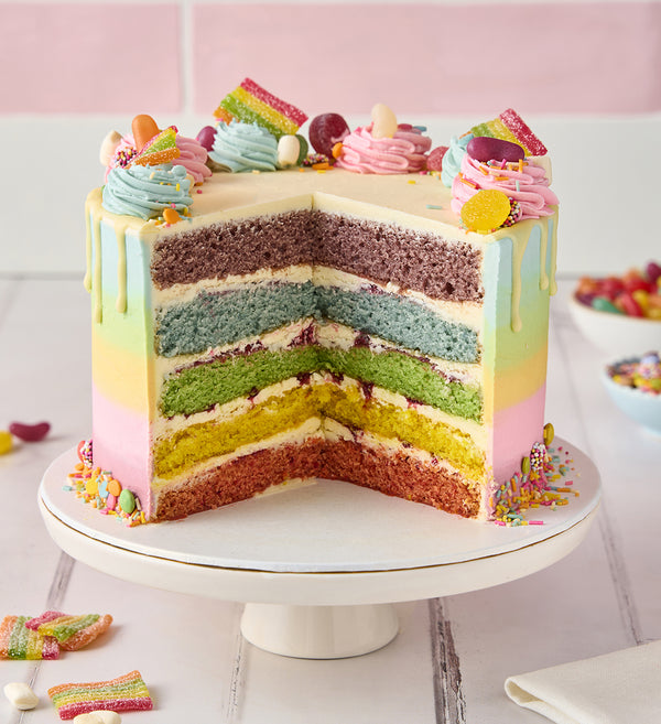 Perfect for everyone, from kids to adults! Our candy coloured cake brings a burst of joy to any celebration. No artifical colours are used in this cake.