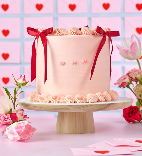 Fall in love with this vintage Valentine’s cake, finished with soft pink vanilla icing and adorned with romantic red bows. A beautifully nostalgic treat made for sharing, gifting, and celebrating love.