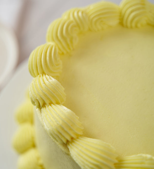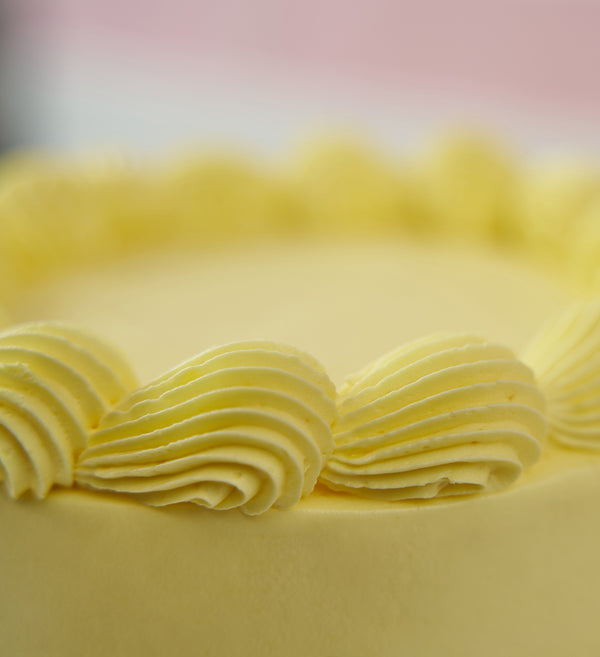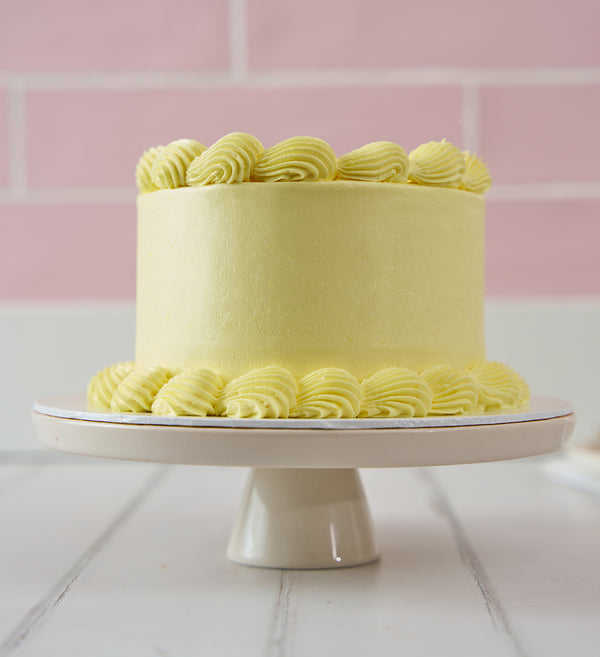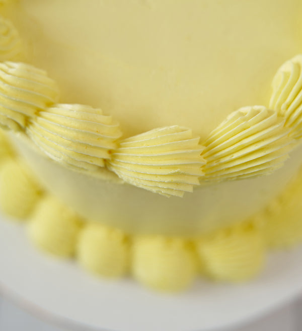 Four layers of zesty vegan lemon sponge filled with raspberry compote, finished with delicate lemon buttercream. Topped with optional bows for an elegant touch!